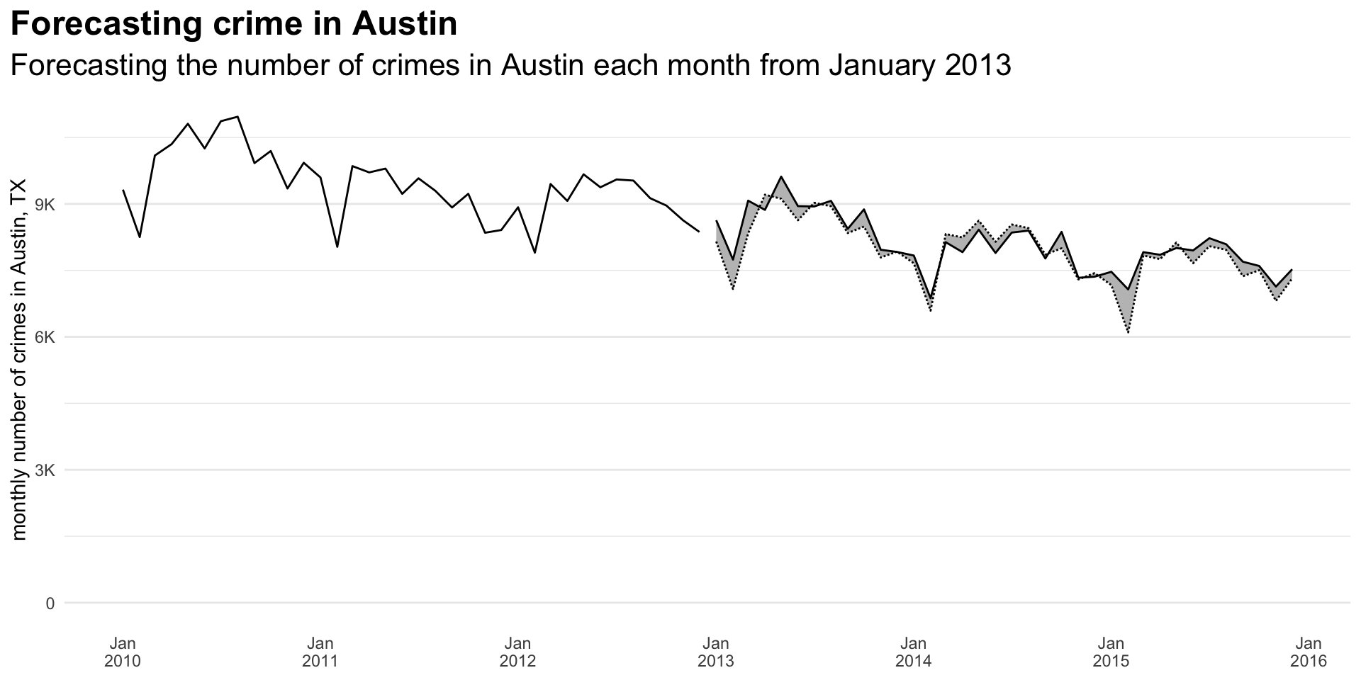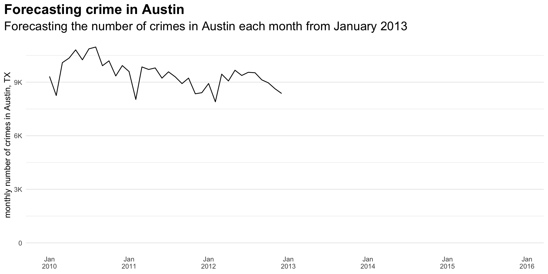 - How many crimes are likely to occur in a city each month for the next three years? (Scenario 1)