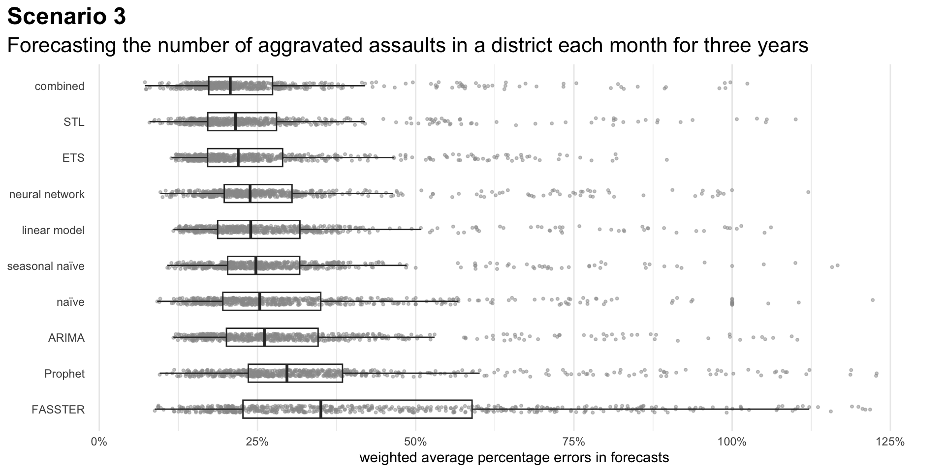 - How many aggravated assaults are likely to occur in a district each month for the next year? (Scenario 3)