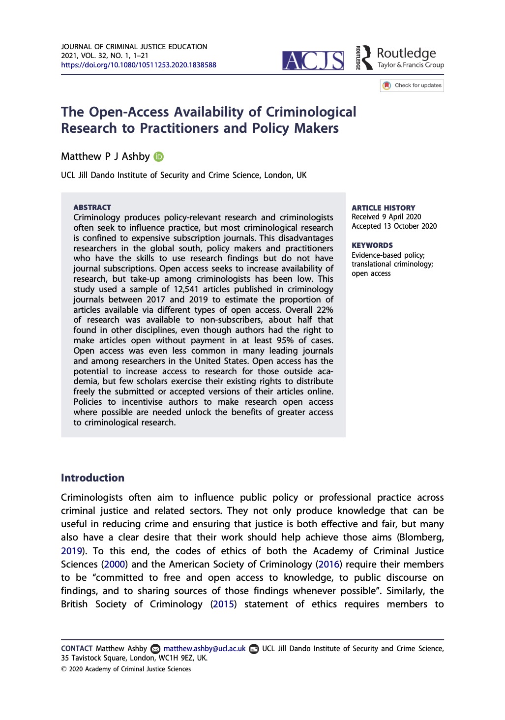 UCL Department of Security and Crime Science